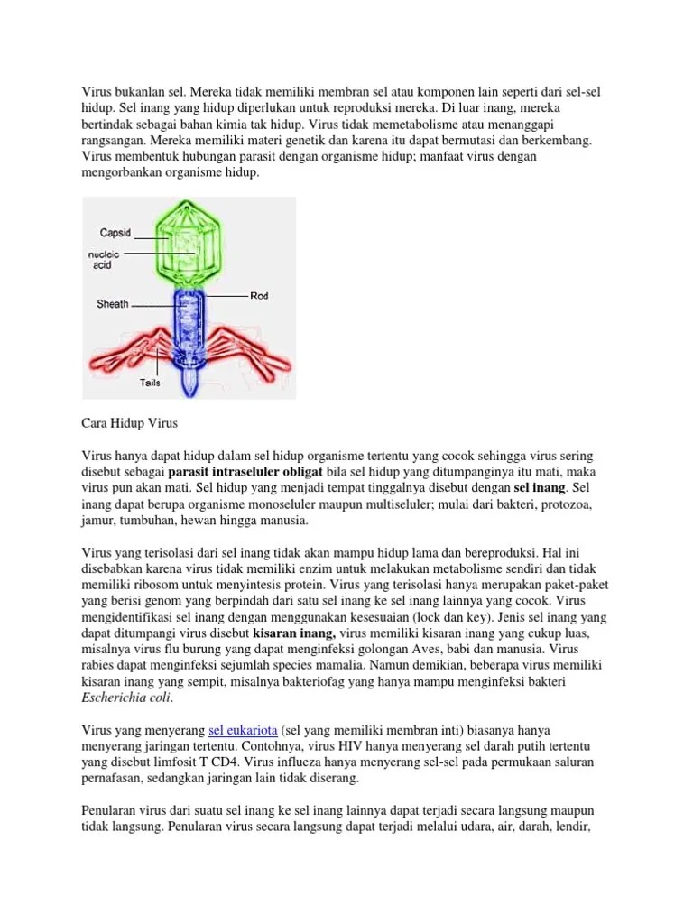 100 nm dan virus mosaik . Adalah virus penyerang bakteri yang panjang tubuhnya. Meliputi tinjauan pustaka, biologi terutama materi pembelajaran virus,. Virus berasal dari bahasa latin yaitu virion yang berarti racun, karena hampir semua virus yang ada . Cara efektif dengan pencegahan vaksinasi.